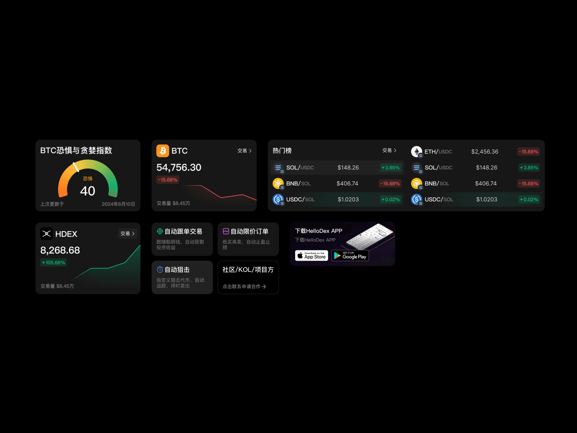 The functional card section at the top of the page provides users with intuitive access to trending tokens, and enables them to make quick decisions using the built-in tools developed by HelloDex.